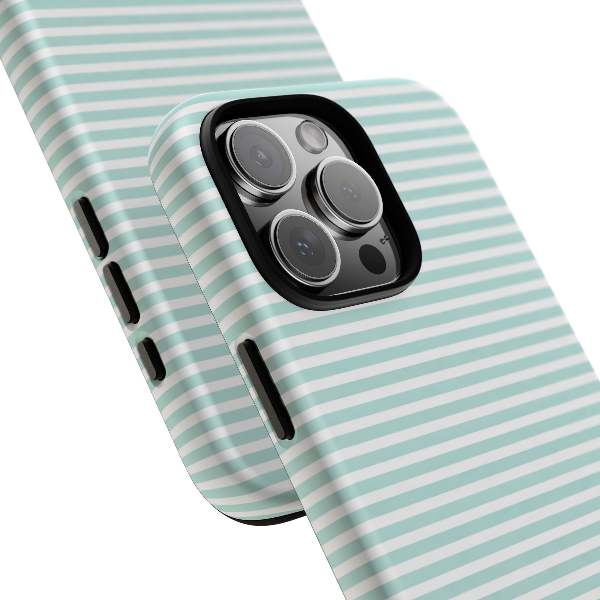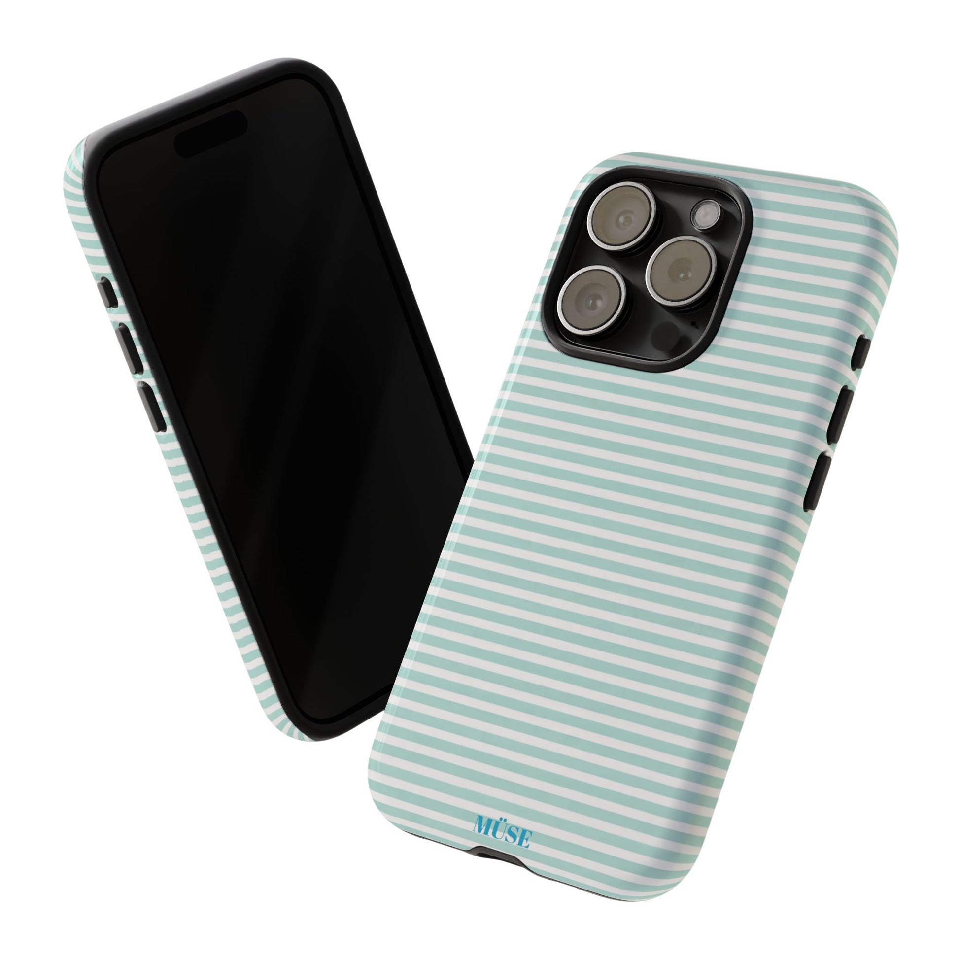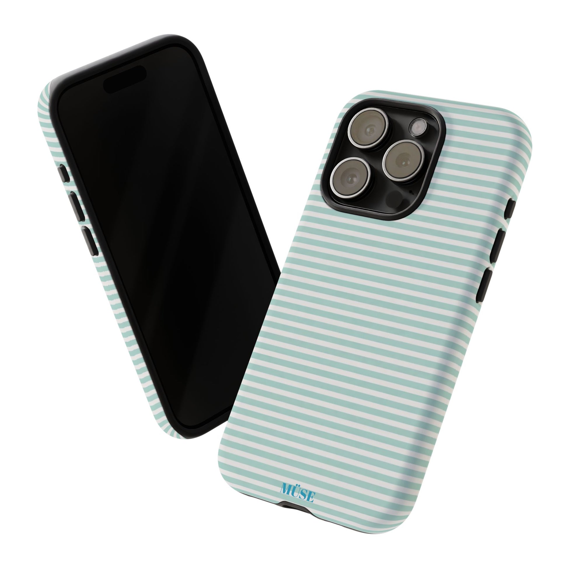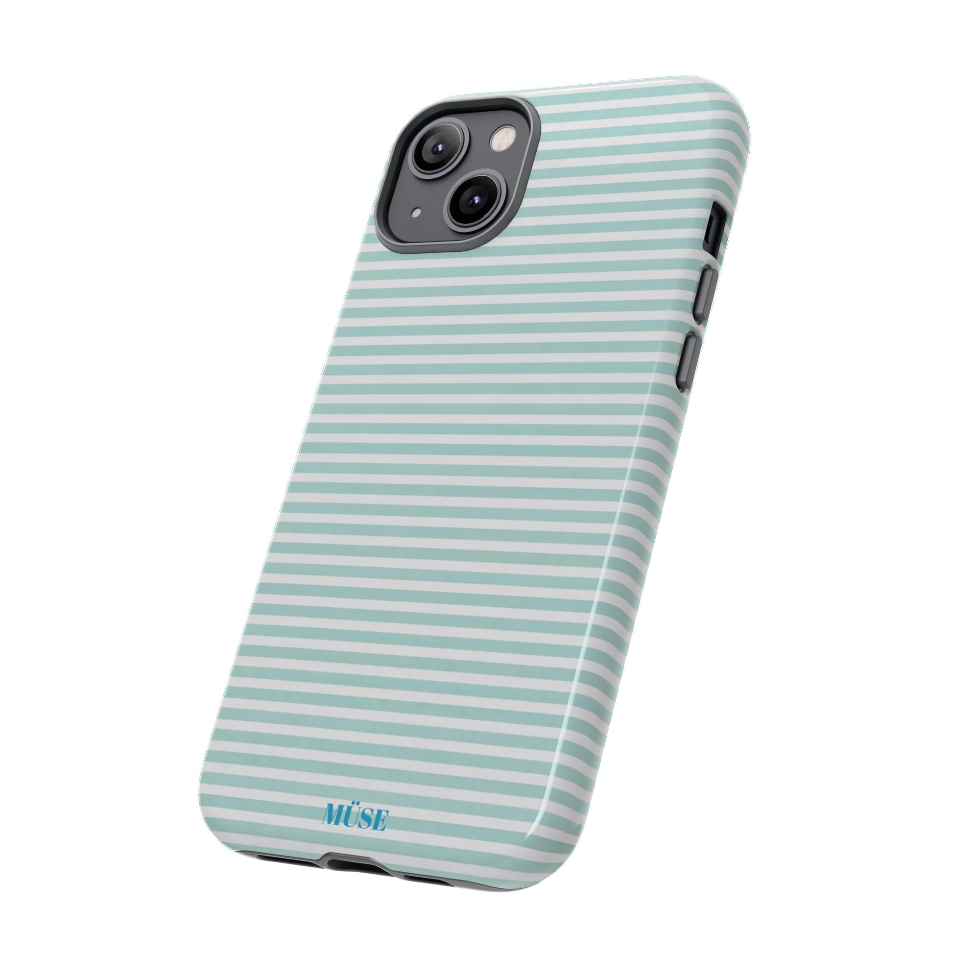A slim, protective phone case with a calm, coastal-striped design that feels like a quiet morning by the water. The double-layer construction cushions against drops while the smooth finish keeps the minimalist stripes crisp and soothing. Light, cool tones and subtle lines sit unobtrusively in a tote or pocket — a practical companion for someone who values clean aesthetics and dependable protection. The case supports wireless charging and keeps ports accessible, so it blends everyday convenience with reliable defense for your device. Follow care notes to keep the print looking fresh: avoid strong alcohols, prolonged sun exposure, and heavy creams.