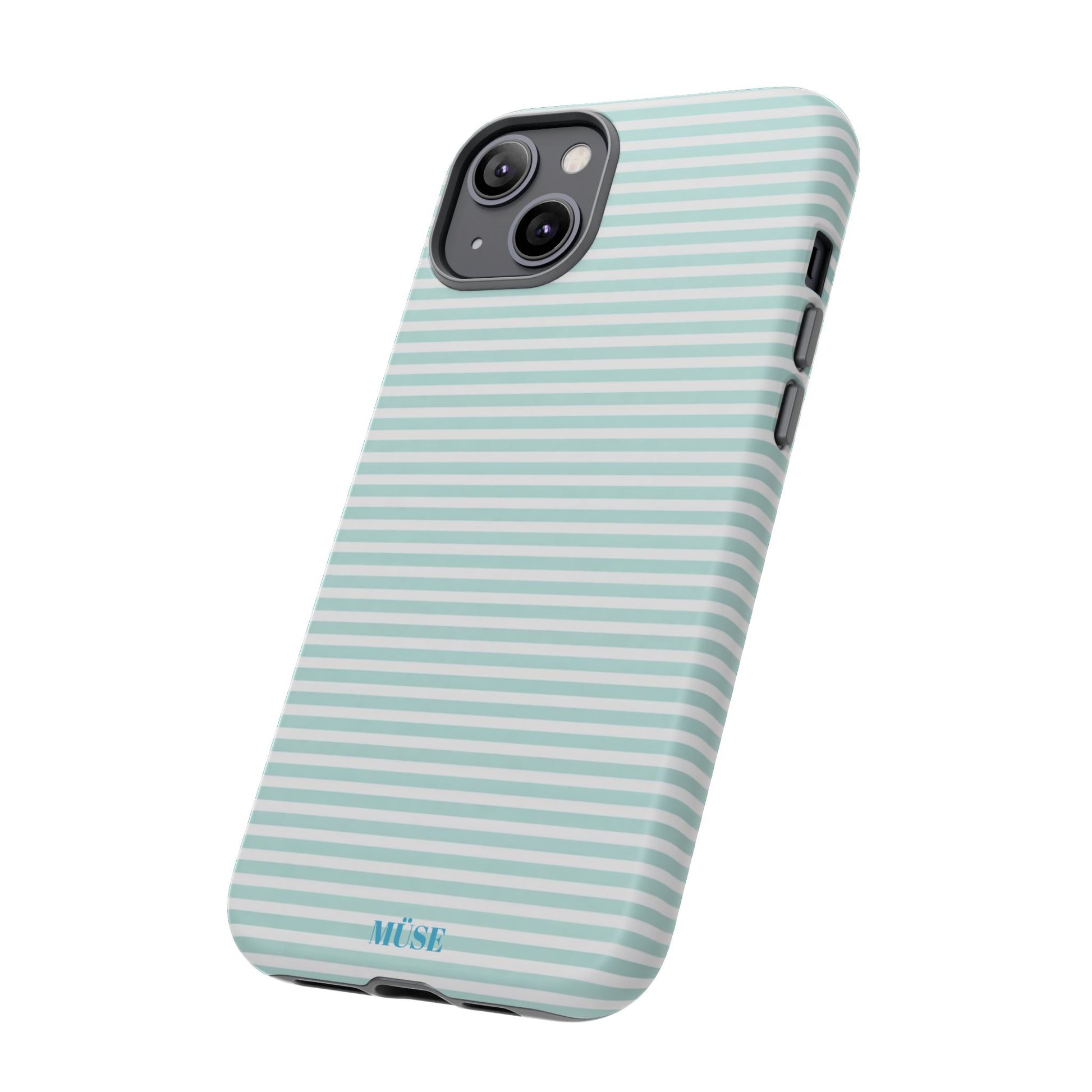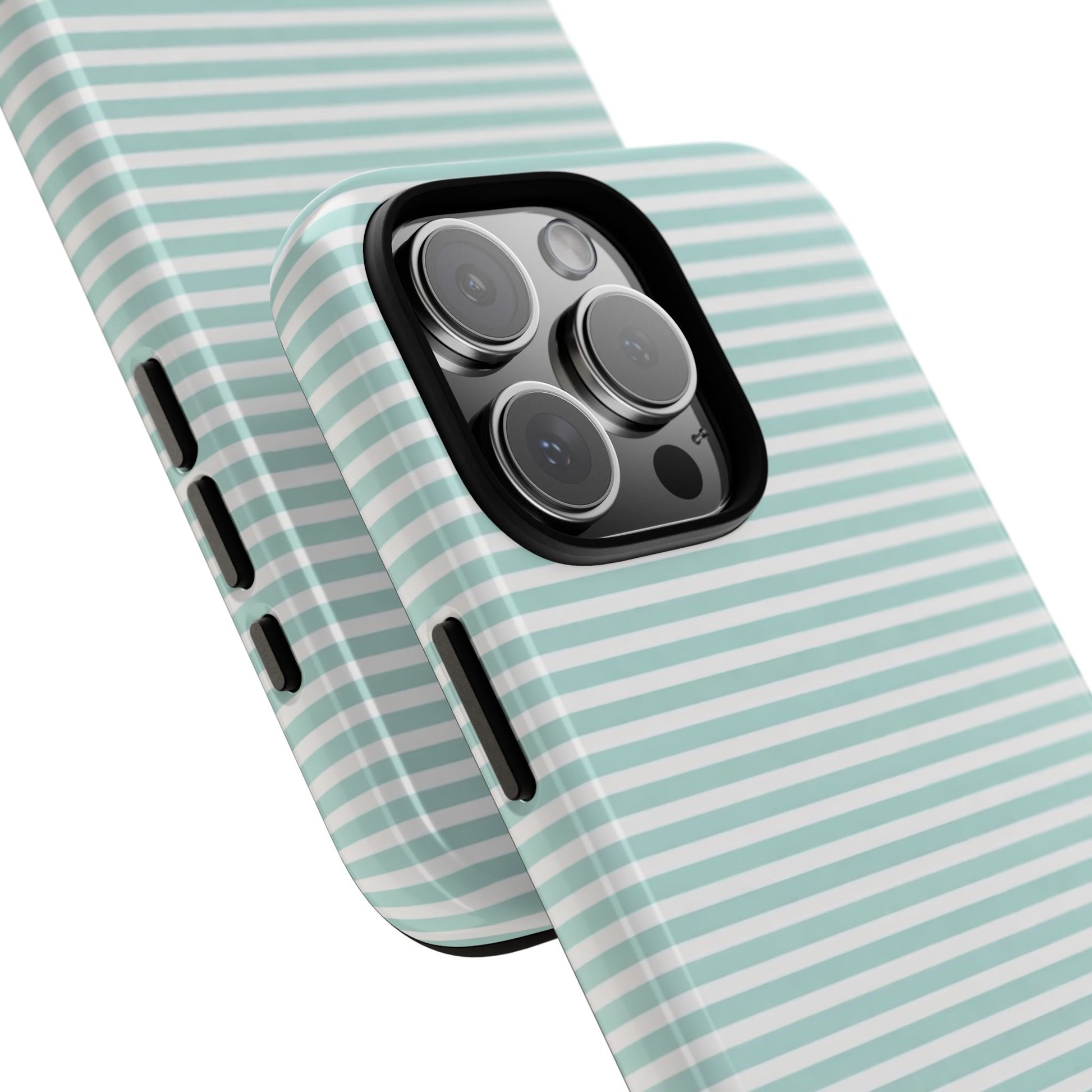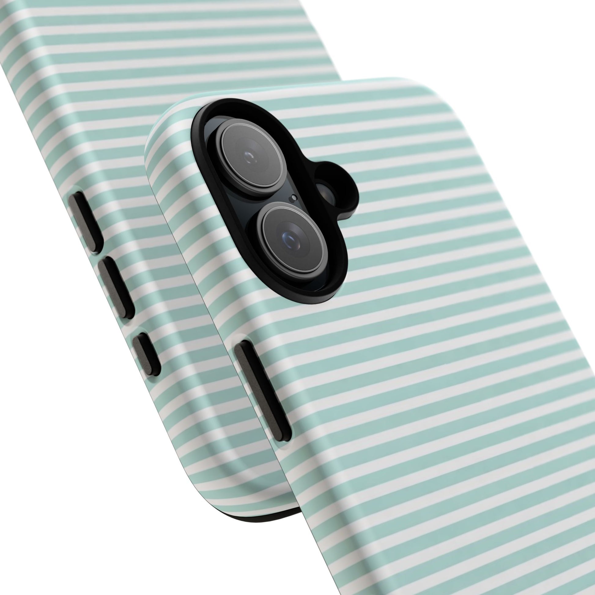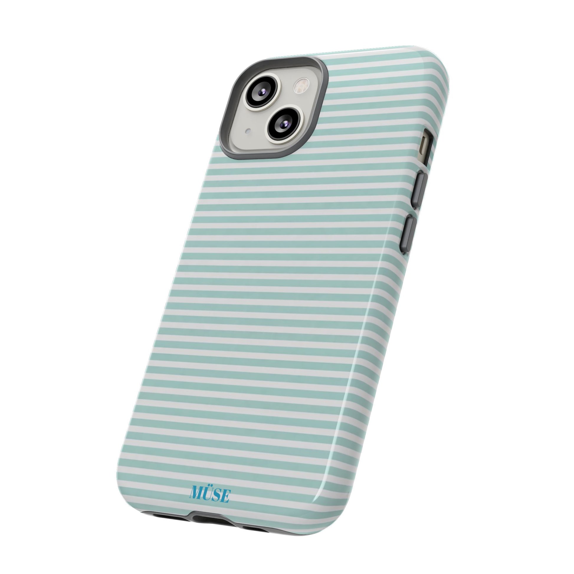 A slim, protective phone case with a calm, coastal-striped design that feels like a quiet morning by the water. The double-layer construction cushions against drops while the smooth finish keeps the minimalist stripes crisp and soothing. Light, cool tones and subtle lines sit unobtrusively in a tote or pocket — a practical companion for someone who values clean aesthetics and dependable protection. The case supports wireless charging and keeps ports accessible, so it blends everyday convenience with reliable defense for your device. Follow care notes to keep the print looking fresh: avoid strong alcohols, prolonged sun exposure, and heavy creams.