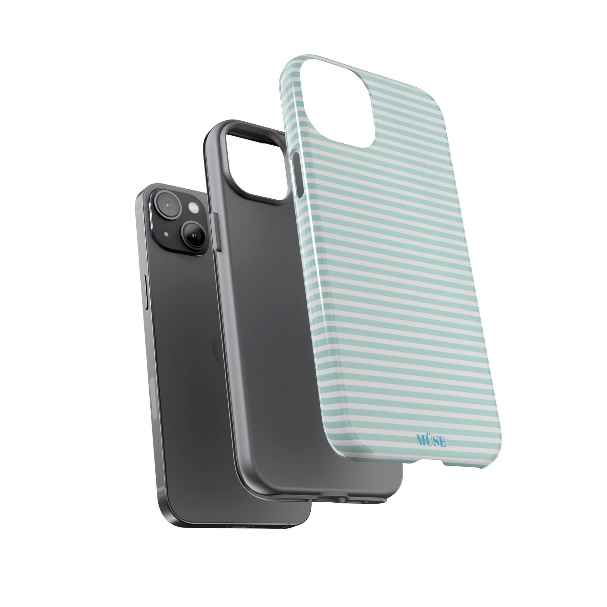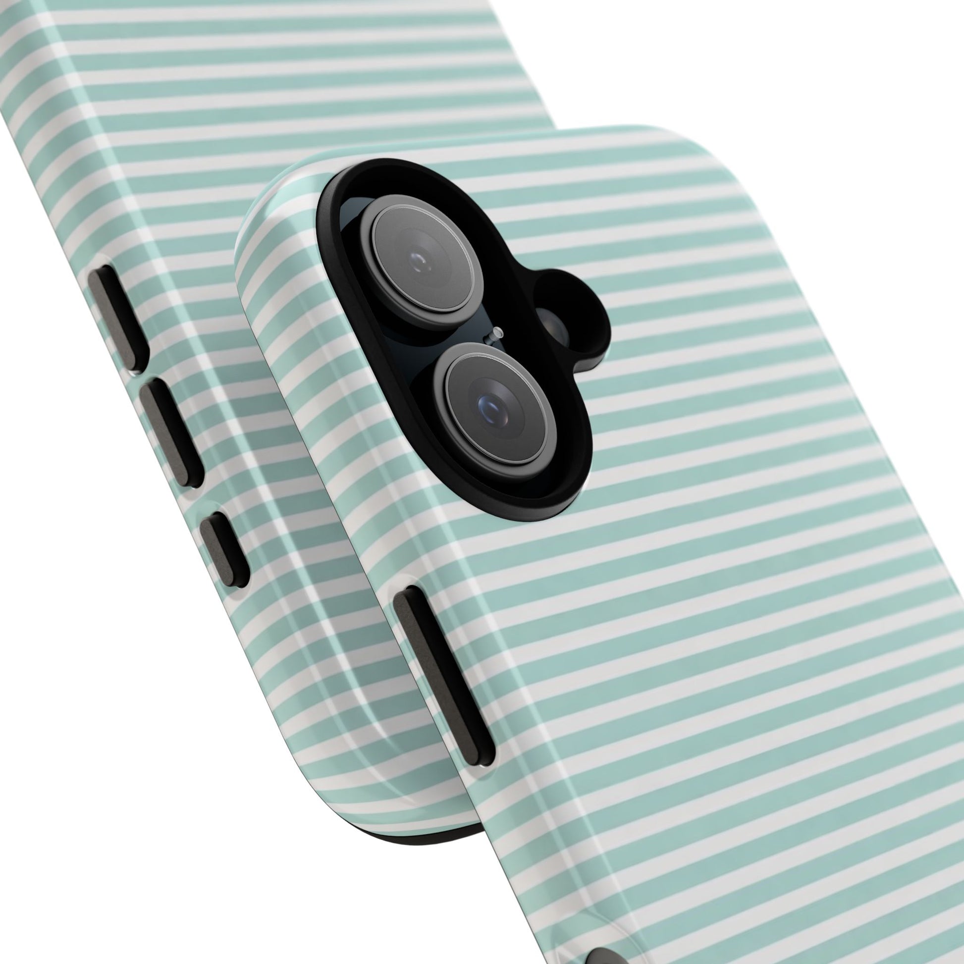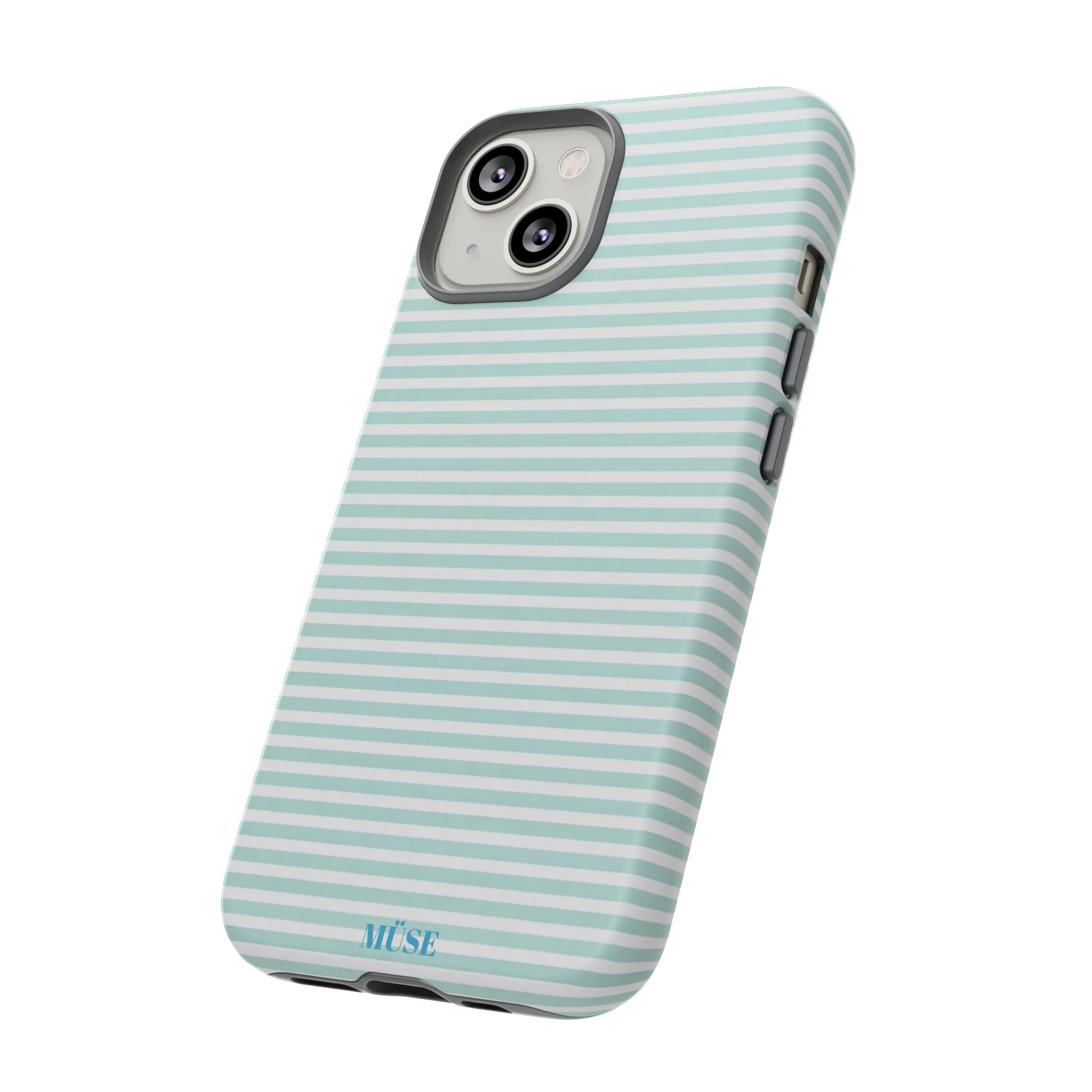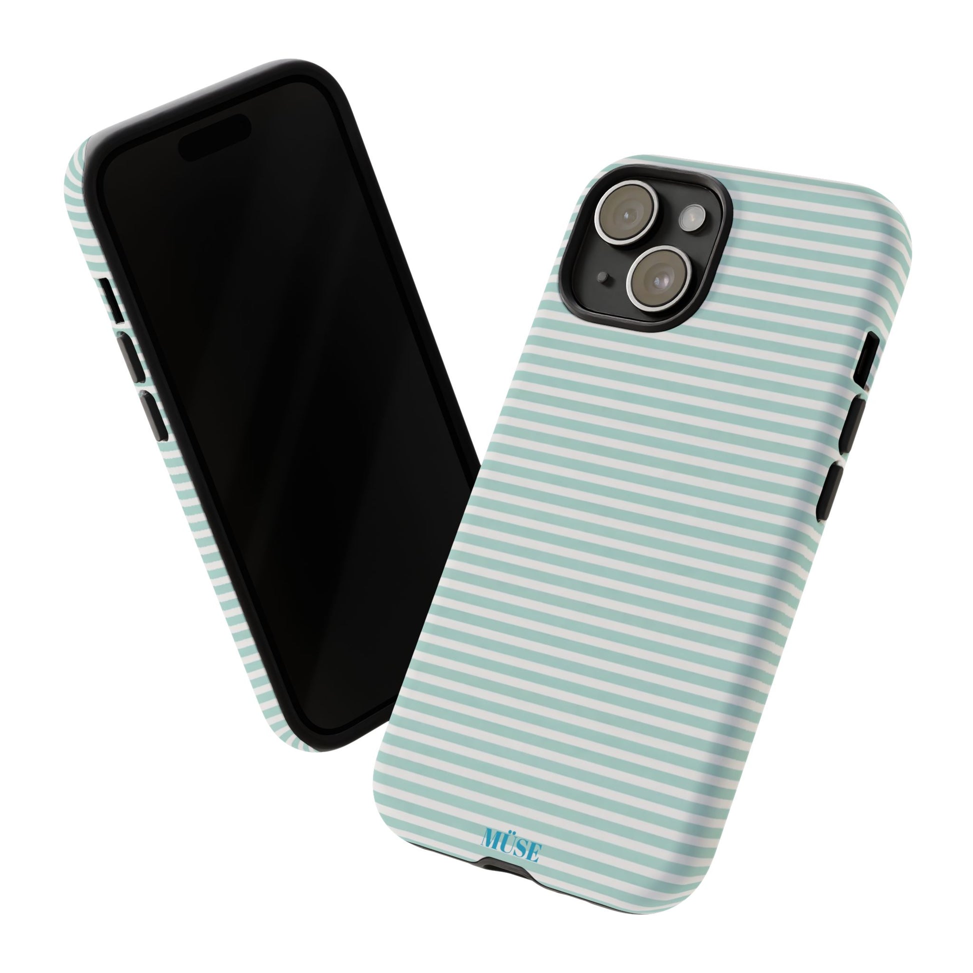 A slim, protective phone case with a calm, coastal-striped design that feels like a quiet morning by the water. The double-layer construction cushions against drops while the smooth finish keeps the minimalist stripes crisp and soothing. Light, cool tones and subtle lines sit unobtrusively in a tote or pocket — a practical companion for someone who values clean aesthetics and dependable protection. The case supports wireless charging and keeps ports accessible, so it blends everyday convenience with reliable defense for your device. Follow care notes to keep the print looking fresh: avoid strong alcohols, prolonged sun exposure, and heavy creams.