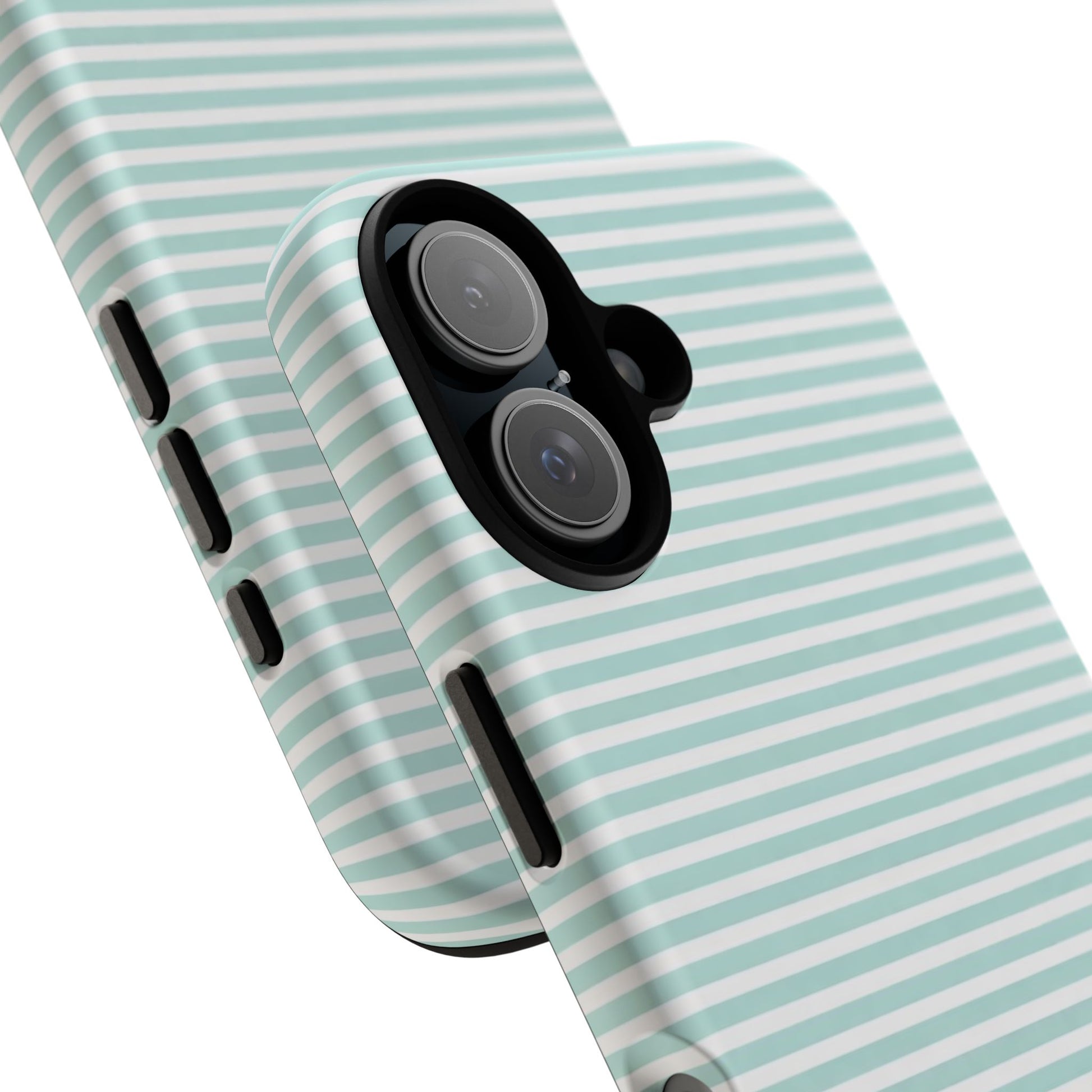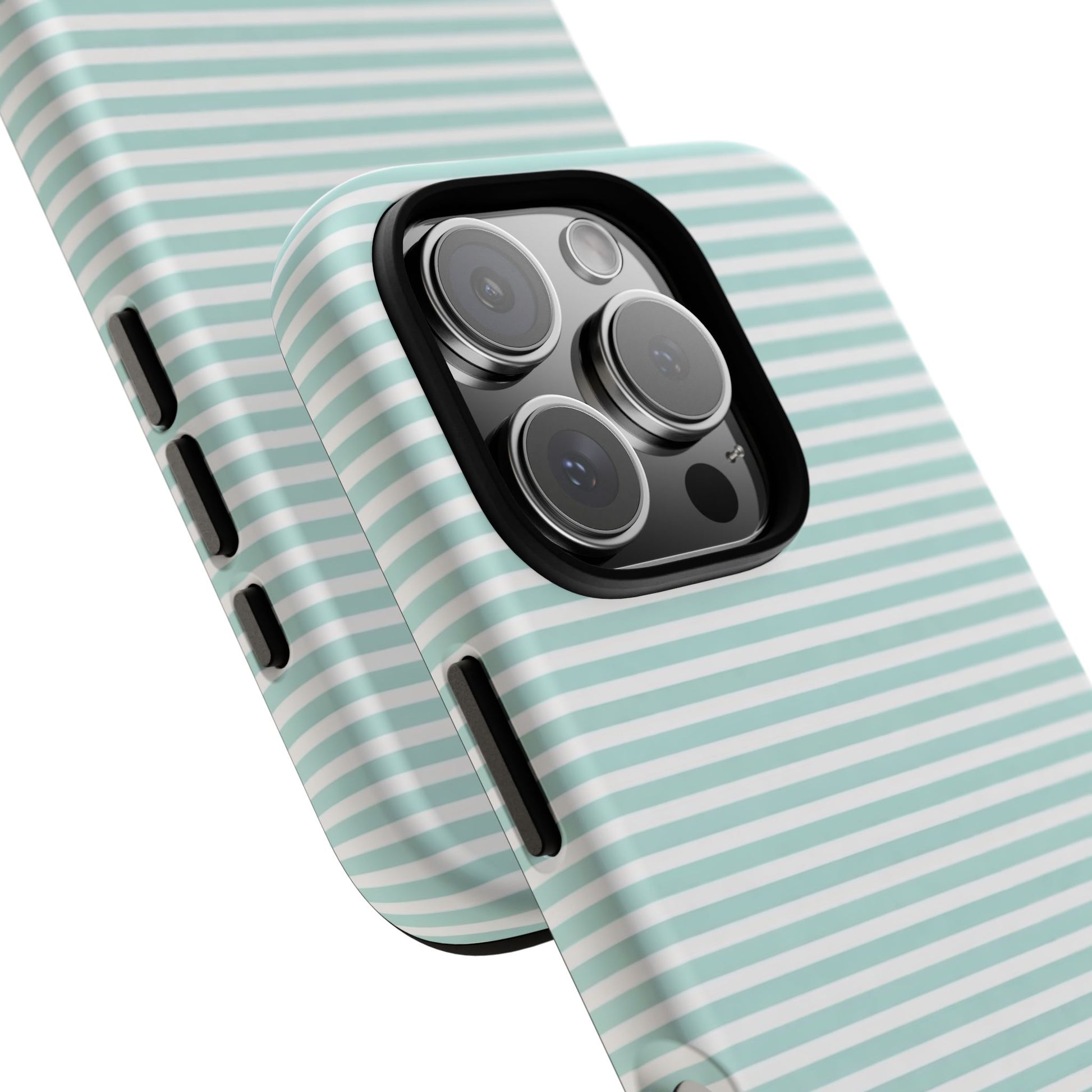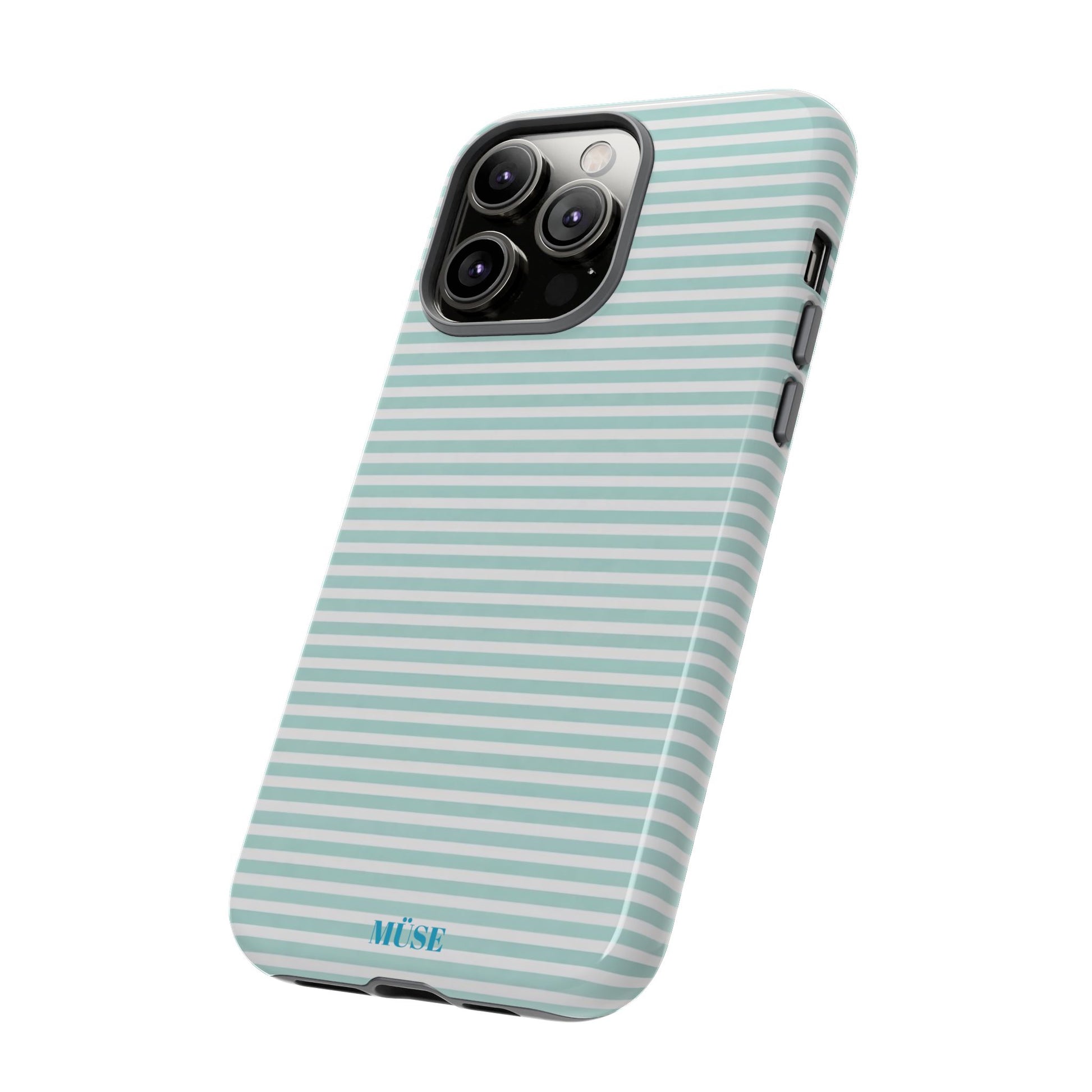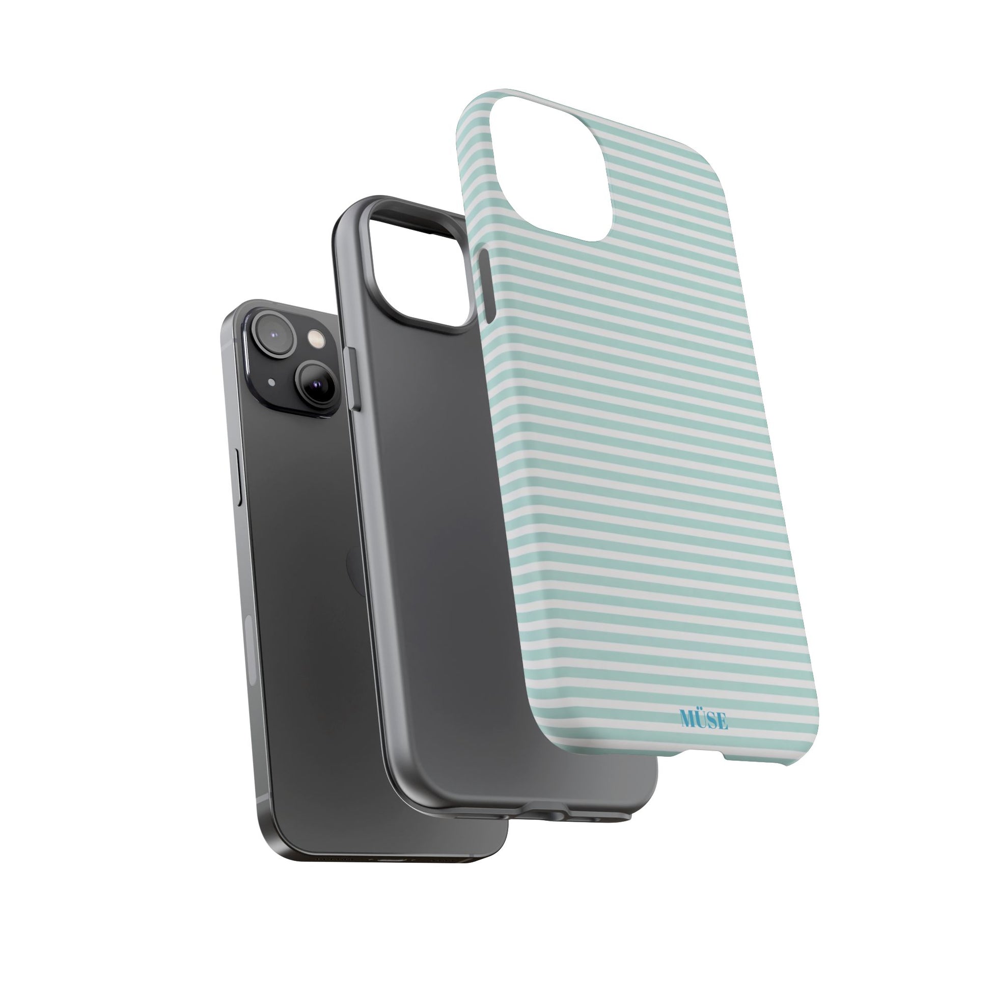 A slim, protective phone case with a calm, coastal-striped design that feels like a quiet morning by the water. The double-layer construction cushions against drops while the smooth finish keeps the minimalist stripes crisp and soothing. Light, cool tones and subtle lines sit unobtrusively in a tote or pocket — a practical companion for someone who values clean aesthetics and dependable protection. The case supports wireless charging and keeps ports accessible, so it blends everyday convenience with reliable defense for your device. Follow care notes to keep the print looking fresh: avoid strong alcohols, prolonged sun exposure, and heavy creams.